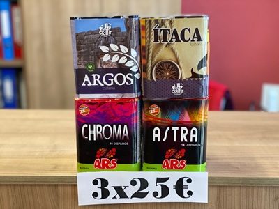 Disfruta de fuegos artificiales en cualquier evento o celebración. Las baterías son pequeñas cajas con tubos en su interior desde los que salen disparadas cargas con diferentes efectos como peonias, crisantemos, kamuros, intermitentes etc. Disponemos de una gran variedad de efectos y tamaños para elegir y siempre con la mejor calidad del mercado.
